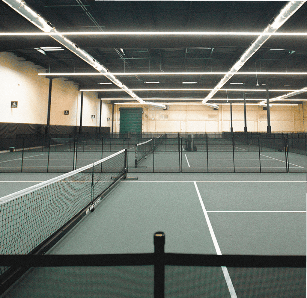 Premium climate-controlled pickleball courts designed for consistent bounce, visibility, and playability in all conditions.